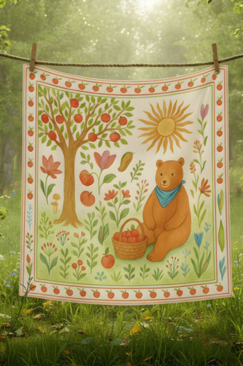 Bajo un cielo perfumado de flores, el Oso Goloso sigue el susurro de los manzanos. Cada paso es un destello de color, cada fruto, una pequeña promesa de alegría. En su mundo, la dulzura y la prudencia aprenden a caminar juntas.