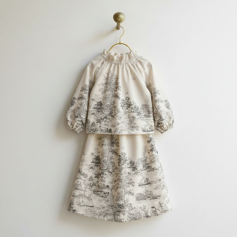 Dependiendo del diseño y del tipo de tela, las piezas pueden ofrecer ligereza y transpirabilidad para días cálidos o mayor abrigo para climas más frescos, asegurando confort durante todo el año. Cada material se elige buscando un equilibrio entre suavidad, textura y resistencia, permitiendo que los niños se muevan, exploren y jueguen libremente.